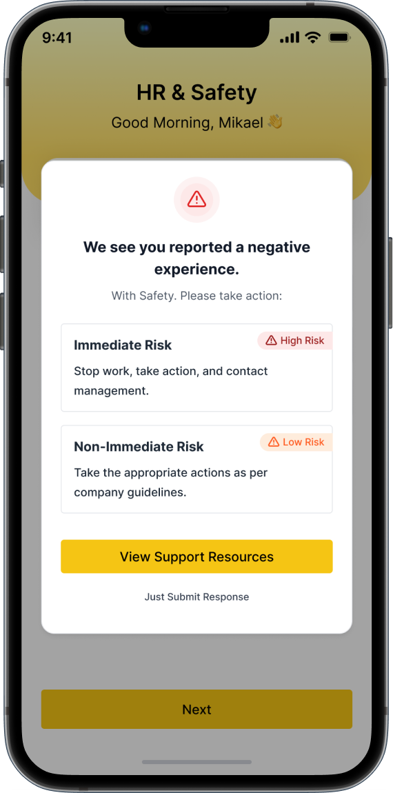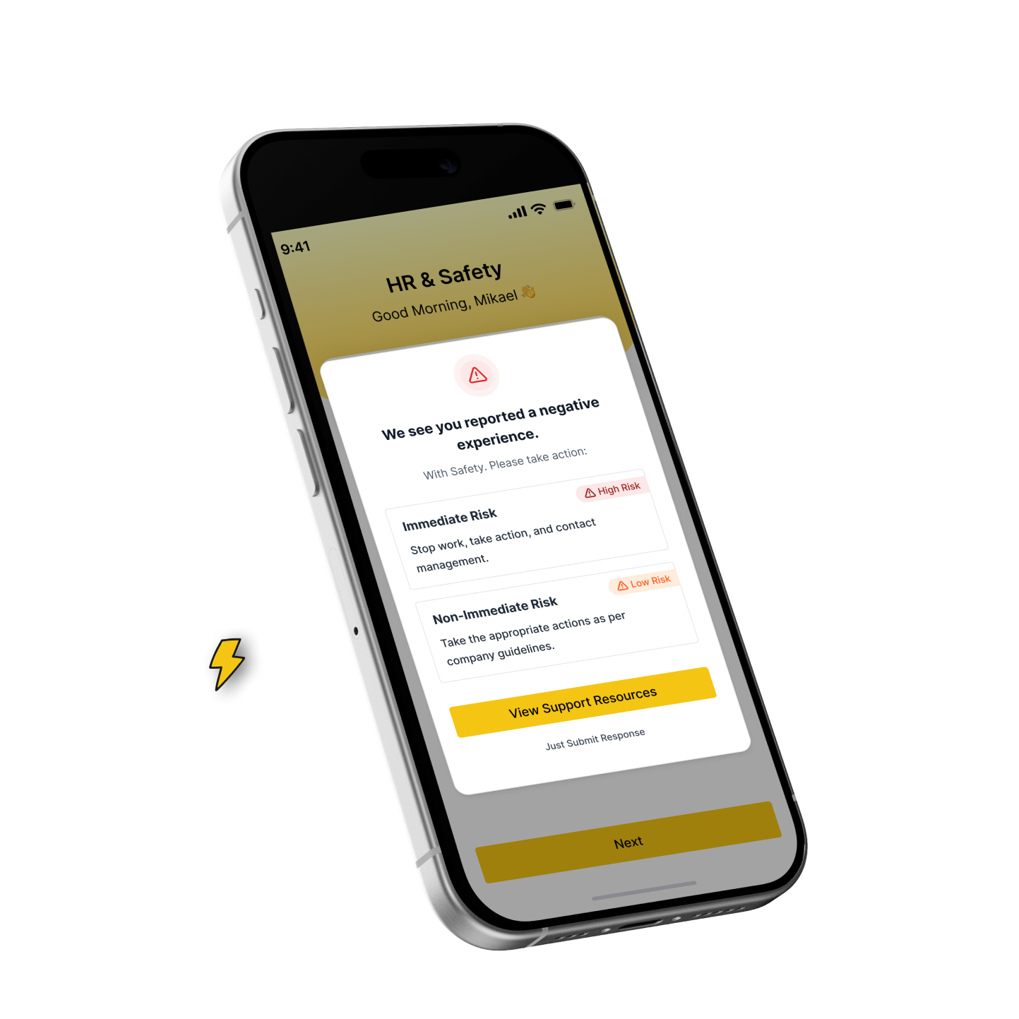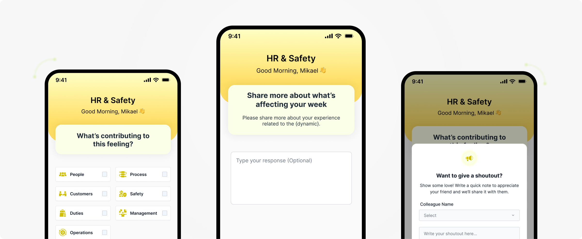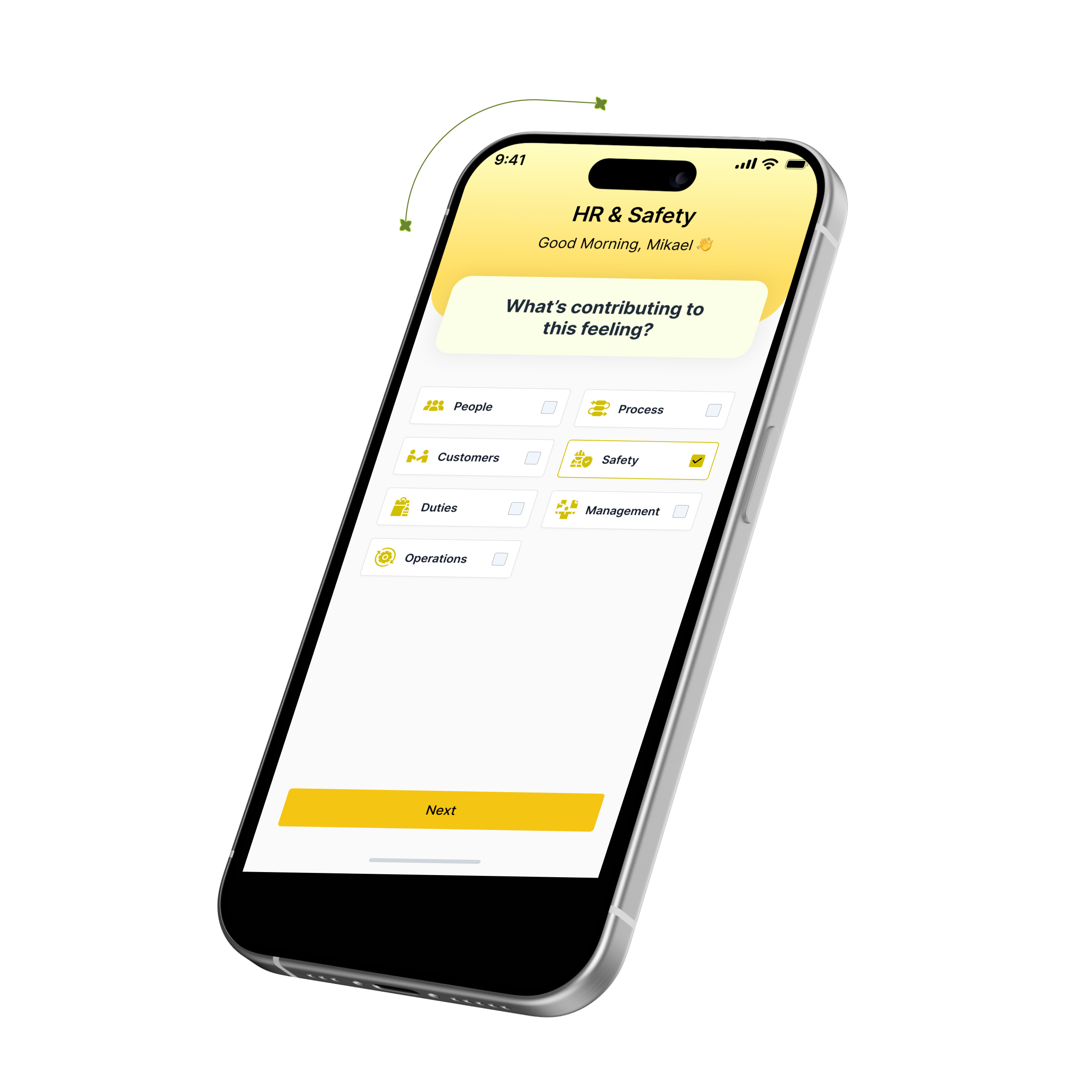 In this application, an employee can quickly share how their week went, highlight what went well or not, and give shoutouts to teammates. All feedback stays confidential and helps improve work, culture, and team safety.