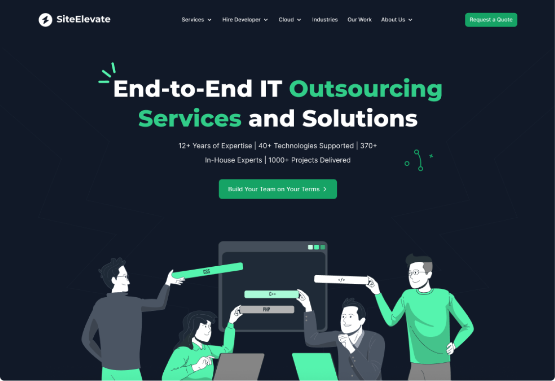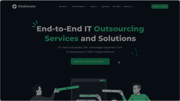 At SiteElevate, we help businesses grow with ready-to-work tech teams, fully equipped development centers, and flexible services. As a trusted IT outsourcing partner, we use agile processes, DevOps, and full-stack skills to deliver smooth, stress-free technology solutions that support your growth and scalability.